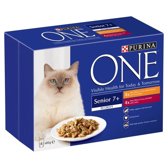 Purina One Senior 7+ Mini Fillets In Gravy Chicken & Beef are delicious recipes that will ensure your cats nutritional needs are met as they reach their senior years.