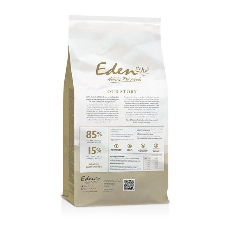 - This recipe is part of a range of Eden products which are naturally complete, optimising nutritional content and supporting our pet’s health and well-being.