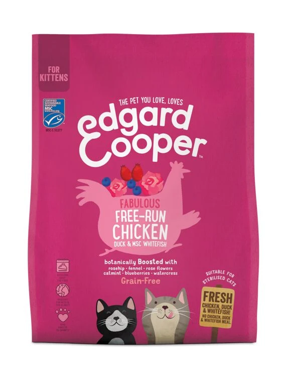 Edgard & Cooper, grain-free kibbles with fresh chicken, duck and whitefish for kittens.
