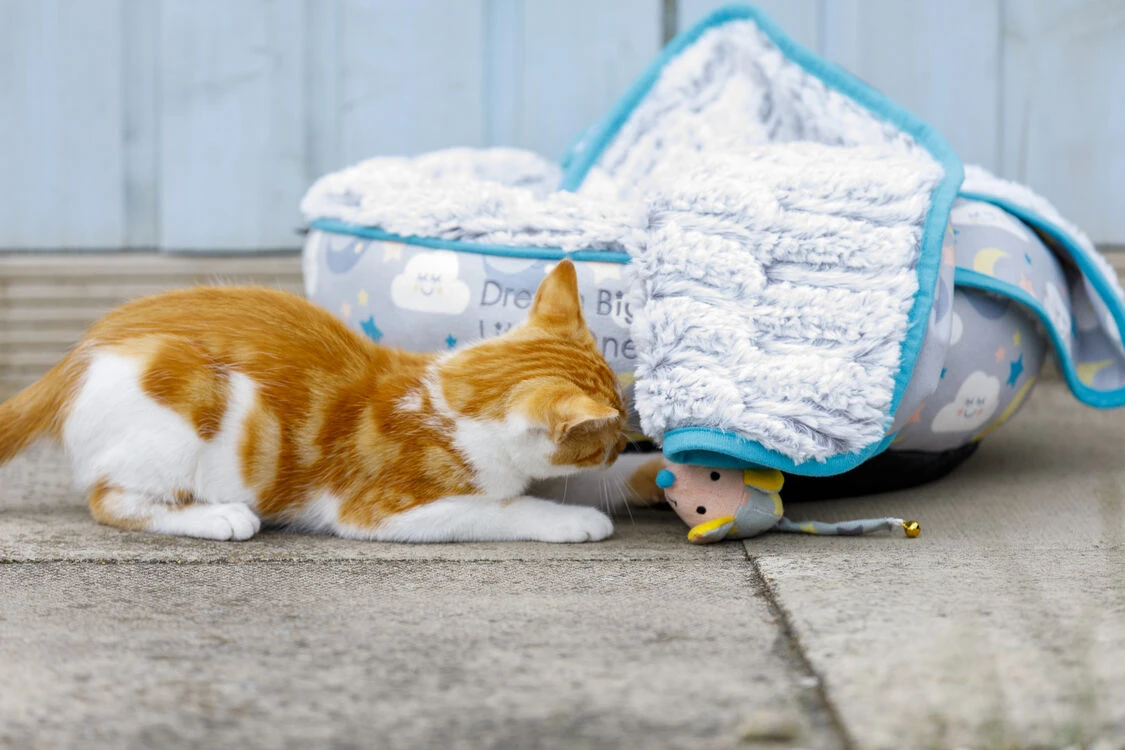 The Little Petface Donut Cat Bed is a warm and cosy sleeping space for your kitten ‘Dream Big Little One’ is embroidered onto the side, making it perfect for your pet to relax and snuggle in.