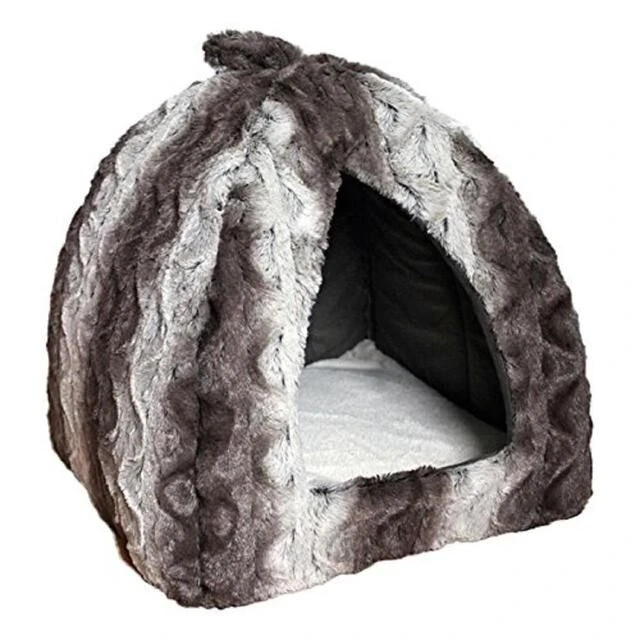 Stylish cat pyramid bed. Unique grey patterned plush on the outside. Soft luxury plush cream cushion included inside. Stylish and modern for today’s home. Machine washable at 30°C.